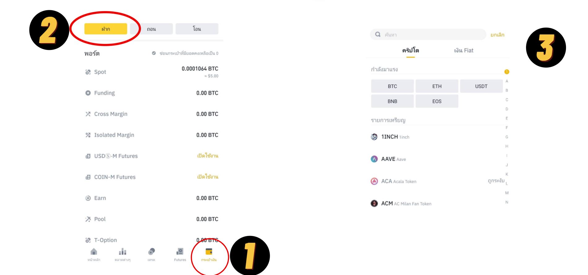 2. เลือกเหรียญที่ต้องการโอนเข้า Binance