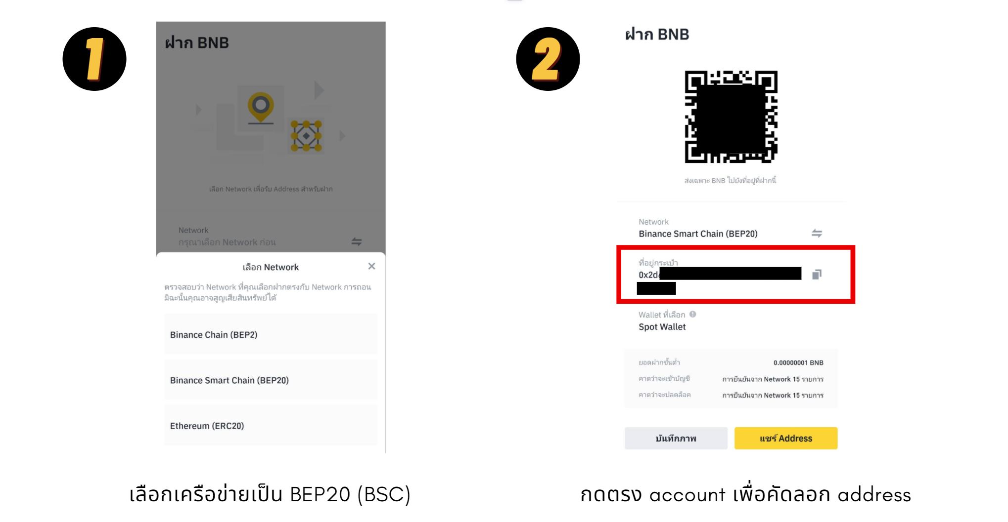3. เลือกเครือข่ายเป็น BEP20 (BSC)